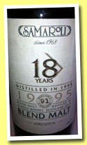 Blend Malt 18 yo 1995/2013 (45%, Samaroli, cask #91) Yes we're cheating, this is a blended malt. It's even quite intriguing as it comes from a single cask and as it bears a vintage, which is unusual. Colour: straw. Nose: a big one again but it's both fresh and a little austere after the Chivas, it's actually quite grassy and herbal. Apple peelings? Maybe a little shy but let's check the palate... Mouth: ah yes, now we're talking! What wasn't in the nose is on the palate, with a Clynelishy (?) profile, lemon pie, beeswax, white pepper, the merest hint of crystallised tangerines, maybe drops of olive oil, touches salt, some smoked salmon... All much to my liking! Finish: long, fresh, salty, lemony and smoky... Comments: excellent, really. It's probably not a nosing whisky at all but the palate is wonderfully zesty. SGP:353 - 86 points. |