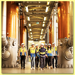 Mortlach's stillhouse, with the spirit still No.1, known as Wee Witchie, at the far left. (Robert Karlsson, Malt Maniacs) |