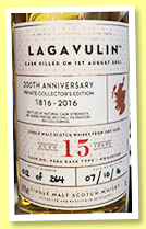 Lagavulin 15 yo 2001/2016 (54.2%, OB, 200th Anniversary Casks of Distinction, Private Collector’s Edition, cask #9554, 264 bottles)