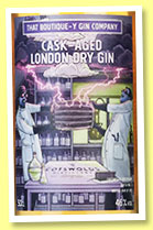 Cherry Gin ‘Batch 1’ (42.6%, That Boutique-y Gin Company, +/-2017) They are losing me, really. We’ll soon have sandal gin, hamster gin, and Semtex gin if it all goes on like this. Colour: redder than blood. Nose: some young Saint-Emilion blended with ginger liqueur and maraschino. Plus a tiny bit of Stilton. No, come on, not gym socks! Mouth: I’m completely baffled. This deeply perplexes me. I do get the cherries, though. And quite a lot of cough syrup for kids. Finish: long, sugary, invasive, threatening. Comments: what would have Schopenhauer said? Is there a code? Is this a message? Are they ready for Brexit? SGP:840 - not scored |