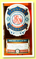 Indeed, we are still running quite behind, and yes, we are rather ashamed. Colour: amber. Nose: quite a similar style, with beer bitters, old walnuts, leather, even a hint of horse dung, cigars, raw chocolate... With water: it leans more towards slightly burnt cake, kougelhopf, burnt walnuts... I quite like this, although it’s hardly summery, to say the least. Mouth (neat): a lot of paraffin from the start, this time. Charcoal, ink, bitter oranges, green pepper... With water: the oranges make a comeback, but a rather intense paraffin doesn't want to relinquish its place. Mint pastilles and a tiny soapy note. Finish: the same. Rubber touches. Comments: make no mistake, this is excellent, it’s just a tad more 'punk' than the others. It’s London, baby.