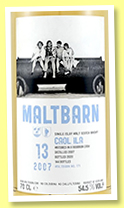 A fantastic label here, Maltbarn's Martin has always given greatest care to the fully original photographs he's been using for his labels, some by his very self. Easily in the Top 10%, together with some Japanese friends. The whiskies aren't half bad either… Colour: white wine. Nose: it is a rather medicinal one, pretty much on eucalyptus-based embrocations and fresh mint. Which means this is no peat monster. Right. With water: mud, plaster, new plastic (pretty much an extinct breed) and homemade yoghurt. A rather bready young CI, that's great. Mouth (neat): excellent! Manzanilla, sea water and bone-dry Mosel riesling blended away together. You may add a tiny drop of pastis. With water: back to peaty, bready ad yeasty flavours. Finish: medium. Comments: very, very good. Perhaps just a little less 'obvious' than others?