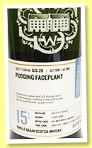 An unusual Westport bottled as a single malt. Colour: deep gold. Nose: big cakes here, cereals, anything by Kellogg's, a lot of butterscotch, even more millionaire shortbread, then salsify gratin and perhaps even moussaka. Good fun! With water: wonderful milk chocolate with a touch of mint, After Eights, more shortbread and scones, and certainly a lot of butterscotch. Mouth (neat): absolutely excellent, with an earthy kind of mineralness, leaves, Mars and Twix, and perhaps even more moussaka. Cheers to our friends in Greece! With water: the best cakes, filled with marmalade. Jaffa cakes. But of course, Jaffa cakes! Finish: long, on the same kinds of notes. Comments: were we the Distillers, we'd be proud to see such an indie bottle bear our actual brand name. One of my favourite fairly recent Glen***gies, and that's not Glenugie.