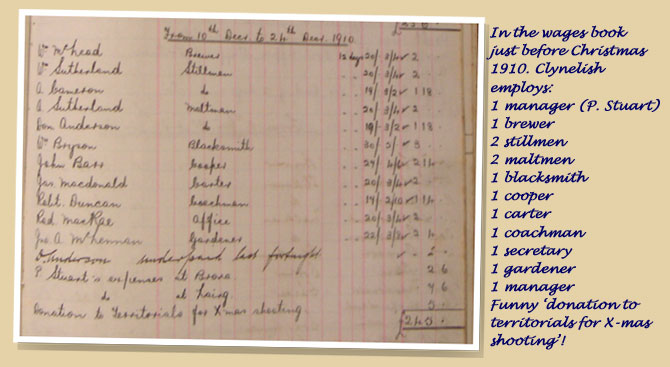 | After the foreign barley used at the turn of the Century, it seems that they start to get some from within the kingdom. For instance, in November 1908, I could see in the book that they tried as much as four different origins: Askaig, Inverbrora, Ross-shire and what they were simply calling 'Scotch'. On the other hand, they used only one kind of yeast (Hamlyn's). Strangely, in April 1911, they were using only Danubian barley. Was it because of a bad season in Scotland? A matter of price? |